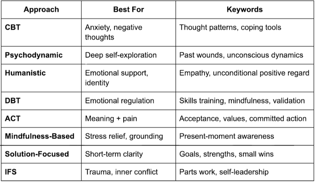 If you’ve ever Googled “types of therapy,” you probably ended up in a sea of acronyms. CBT. ACT. DBT. IFS. It can all feel a bit like alphabet soup, with your emotional well-being somewhere floating in the broth.